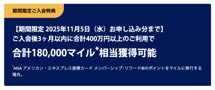 ・入会3ヶ月以内に180万円以上の利用で25,000ポイント獲得