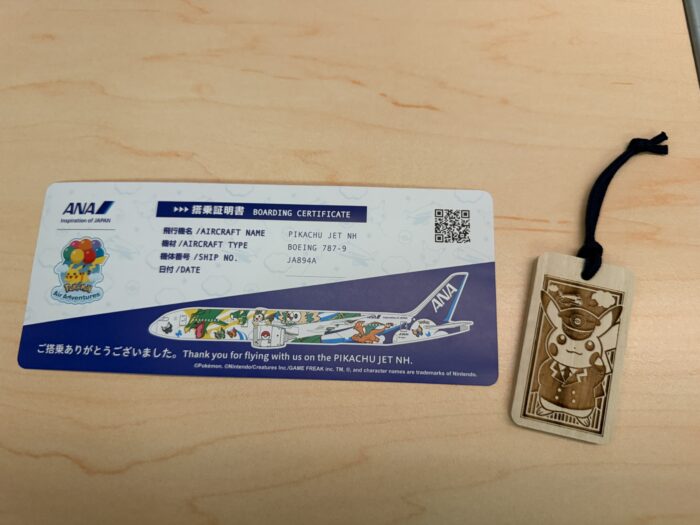 搭乗証明書と、ピカチュウがデザインされた木札です。