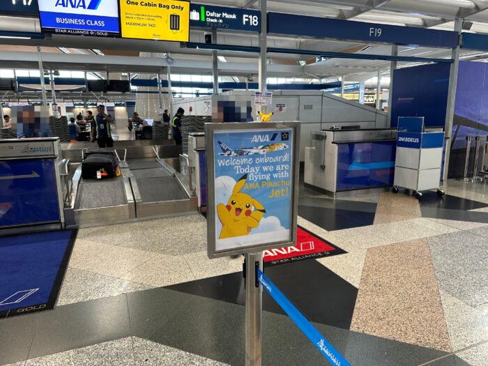 ビジネスクラスのカウンターに行ったところ、ピカチュウジェットの表示がされていました。