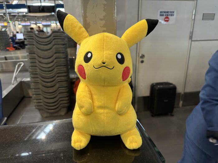 ピカチュウは、エコノミークラス搭乗者のお出迎えに持っていくとのことで、ちょっとだけお借りして記念撮影をしていただきました。