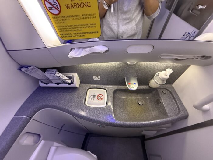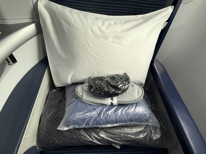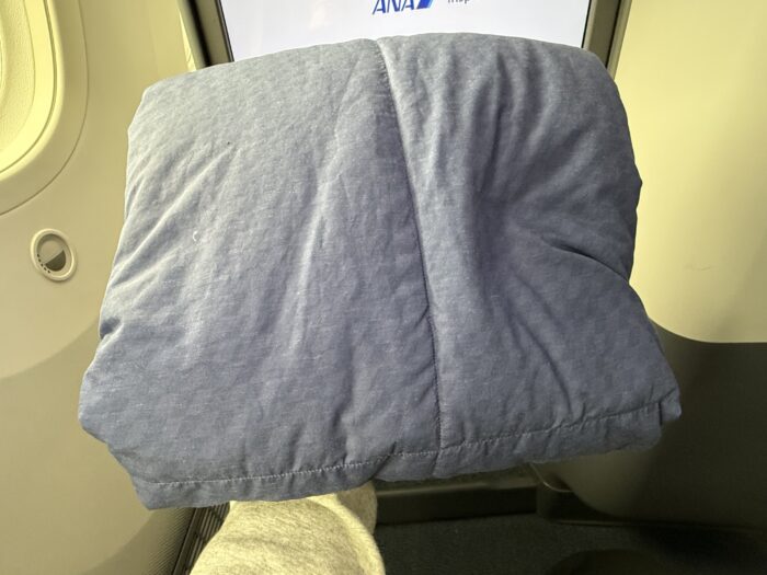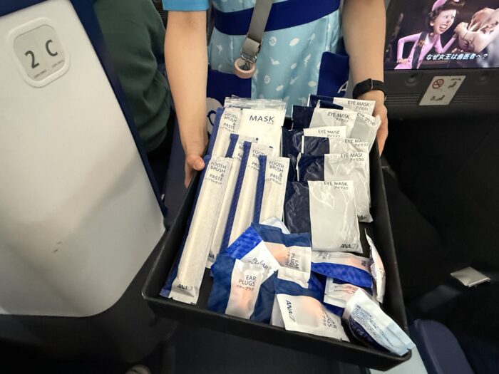 アメニティ一式は、搭乗時に座席の上に置かれています。
