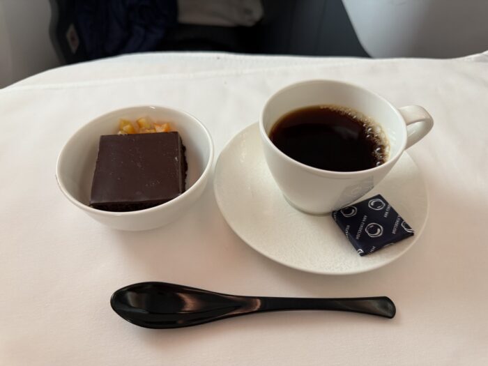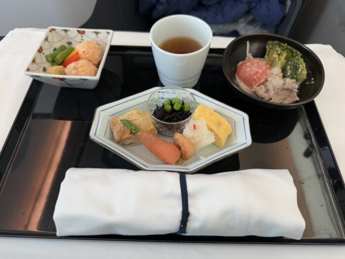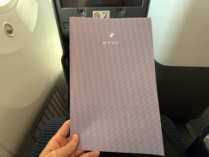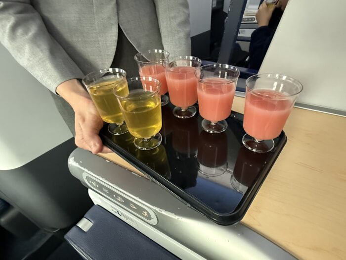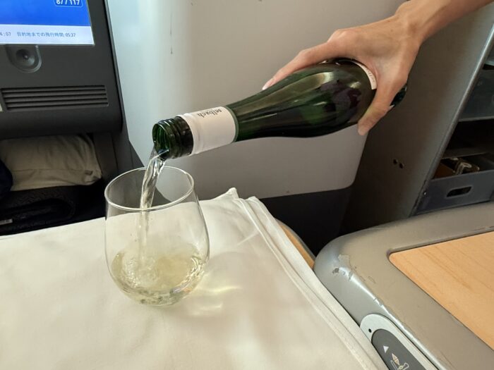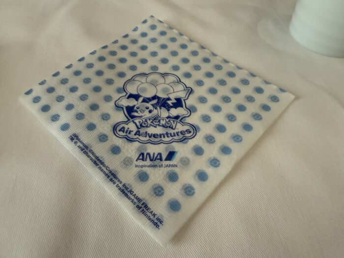 紙コップもポケモンの専用デザインなのですが、ビジネスクラスはグラスで提供されるので確認できませんでした