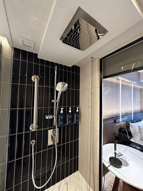 シャワールームは、レインシャワーとホース式の2種類のシャワーが設置されています。