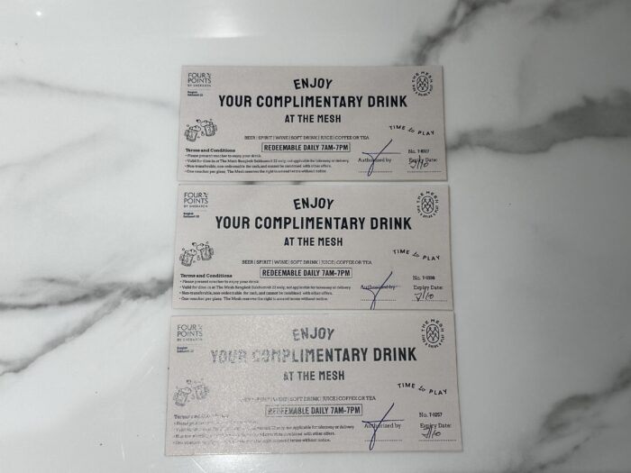 クラブラウンジの設定はありませんが、無料のドリンクチケットが泊数分もらえます。
