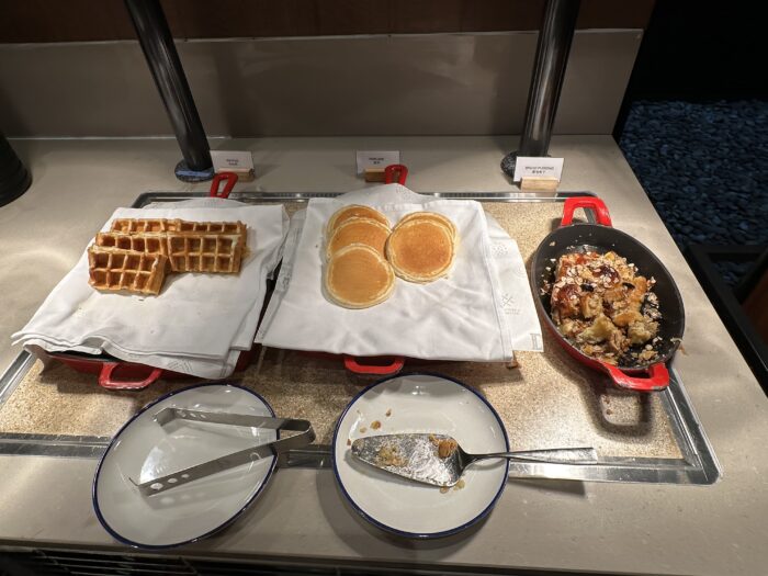 ワッフル、パンケーキ、ブレッドプディング、点心のセット