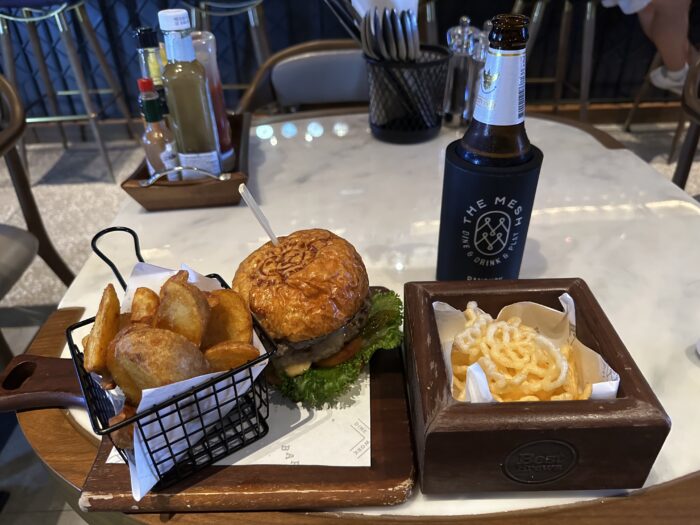 夕食時にドリンクチケットを使ってビールと、チーズボムバーガーをいただきました。