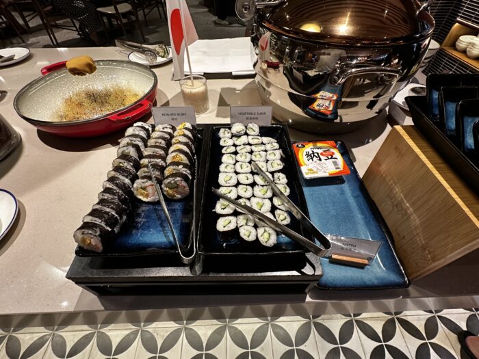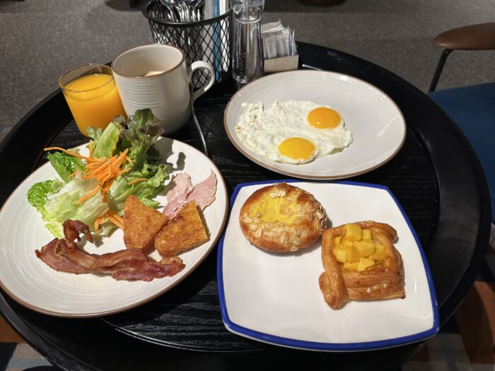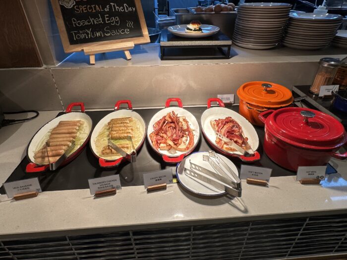 朝食はビュッフェになっていて、メニューはウエスタンスタイルが中心ですが、和食、韓国料理、タイ料理も少しだけ用意がありました。