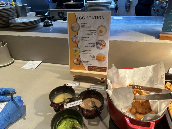 エッグステーションでは、オムレツ以外にもスクランブル、目玉焼きも頼めます。