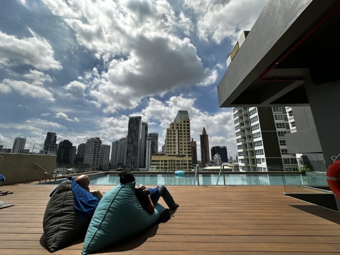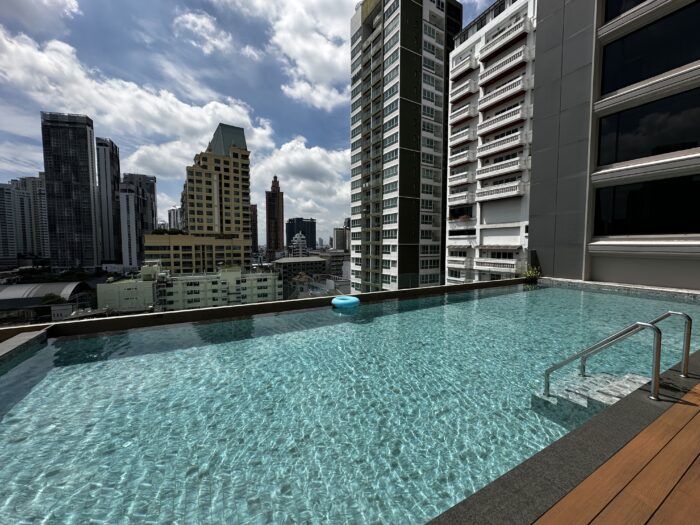 広いプールエリアではありませんが、バンコクの高層ビル群を眺めながらリラックスできるような気持ちの良い空間になっています。