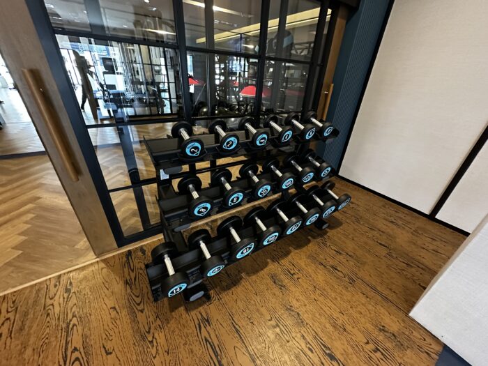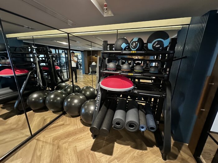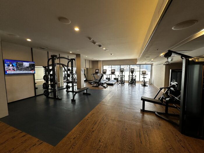 フィットネスエリアは、広々した空間ではありますが、器具は少なめで最低限といった感じです。