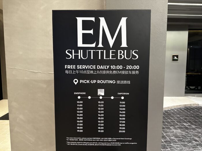 ホテルからは無料のシャトルバスが出ていて、「EMSPHERE」と「EMPORIUM」といったバンコクでも屈指の大型ショッピングモールへアクセスすることができます。