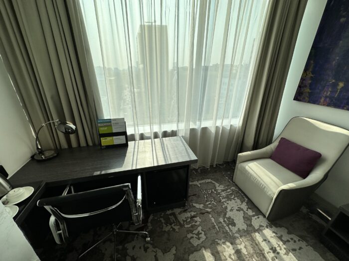 窓側はビジネスデスクとソファーが設置されていて、ワーキングスペースとしても使い勝手がよかったです。