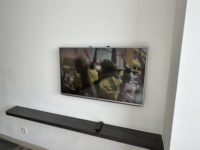 テレビは壁掛けの液晶テレビが設置されています。