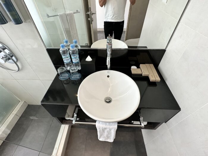水のボトルが2本置かれているので、歯磨き等もミネラルウォーター推奨なのだと思います。
