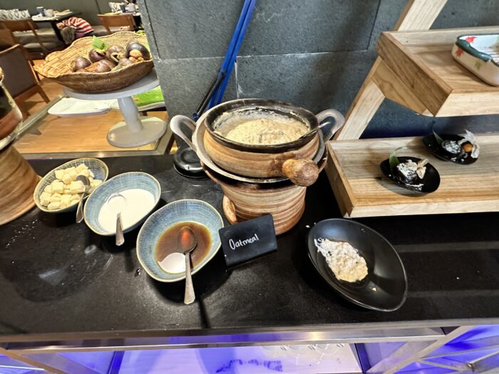 左側はお粥かと思ったら、よくわからない料理、右側はオートミールです。