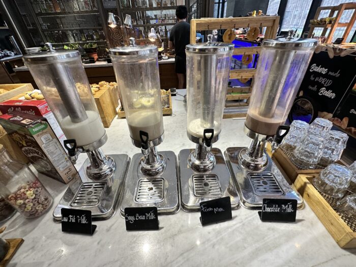 シリアルコーナーに、牛乳コーナー
