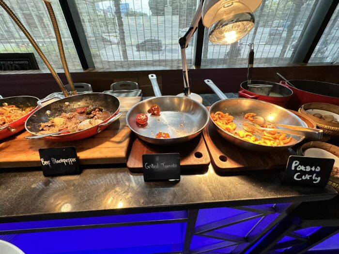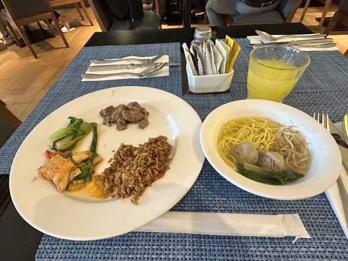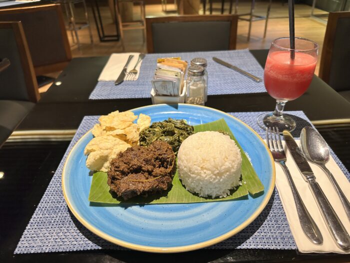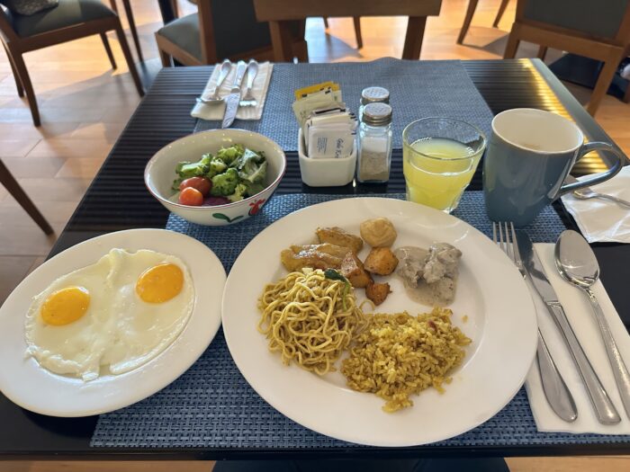 ビュッフェ形式になっていて、アメリカンブレックファースト、インドネシア料理が中心で、一部中華料理も置いてある感じでした。