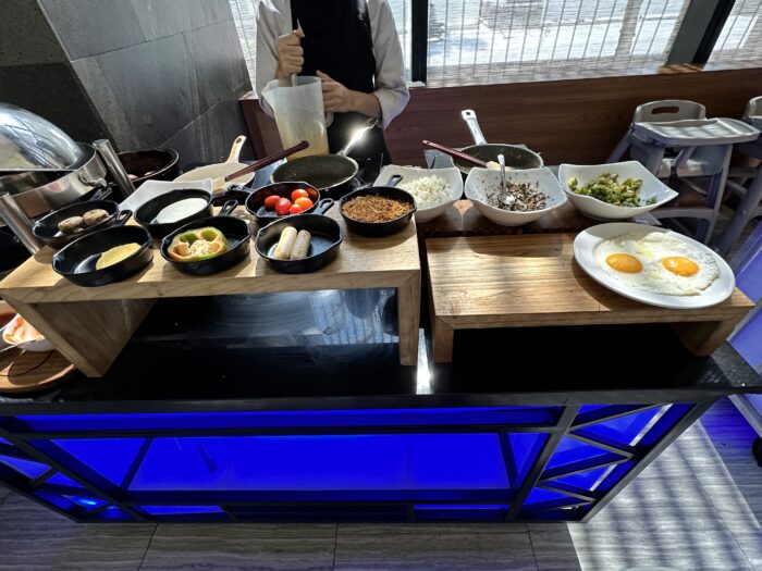 エッグステーションとヌードルバーがあり、好みの調理法で提供してもらえます。