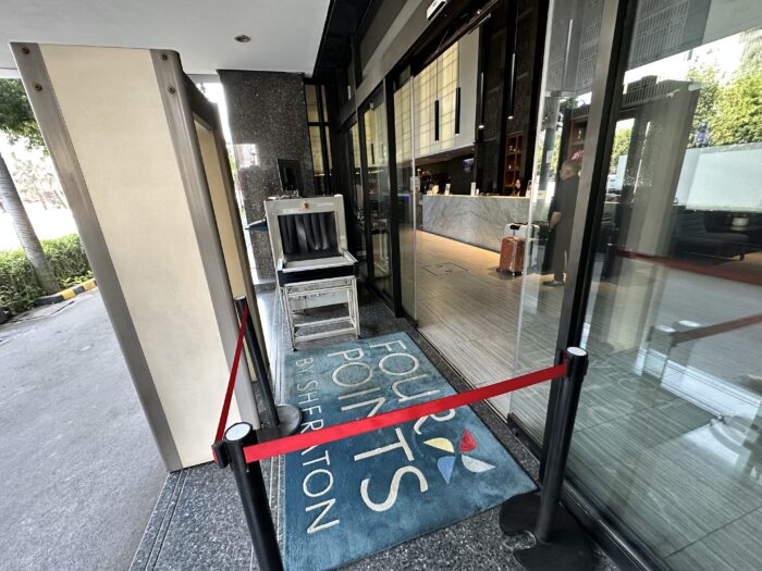 インドネシアのホテルは、ホテルに入館する前に手荷物検査を行います。