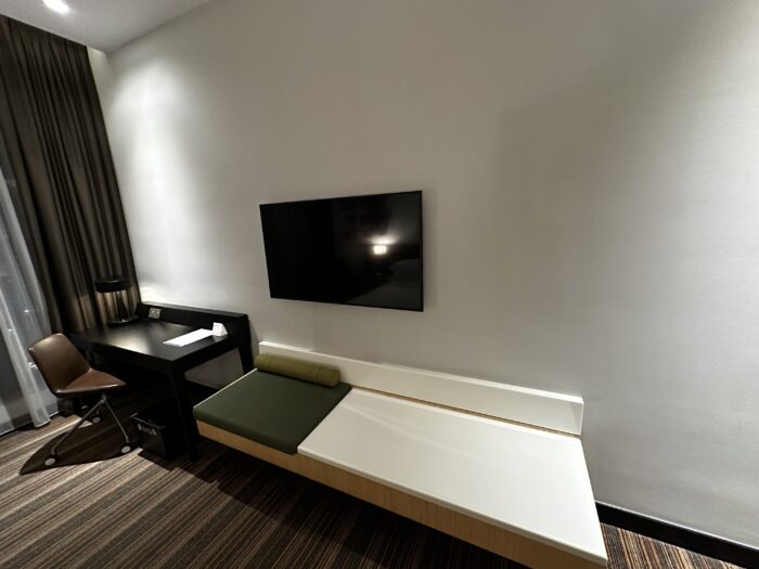 壁側は、壁掛けのテレビとバゲージラックと椅子が一体になっています。