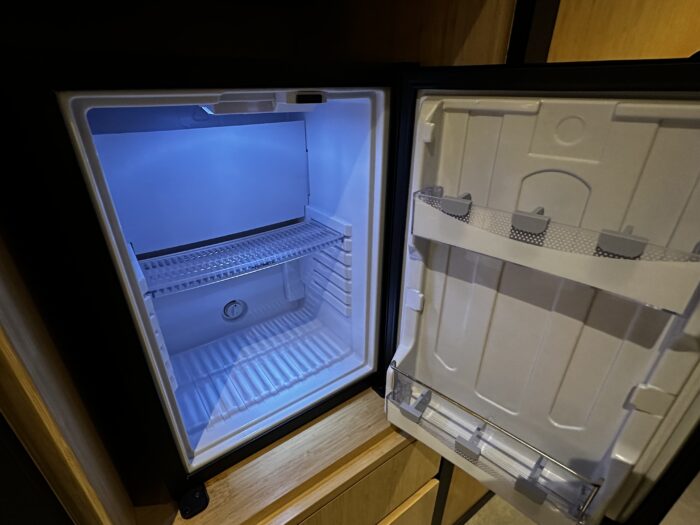 冷蔵庫は、下段ではなくミニバーの横に設置されていて、しゃがまなくても使うことができます。
