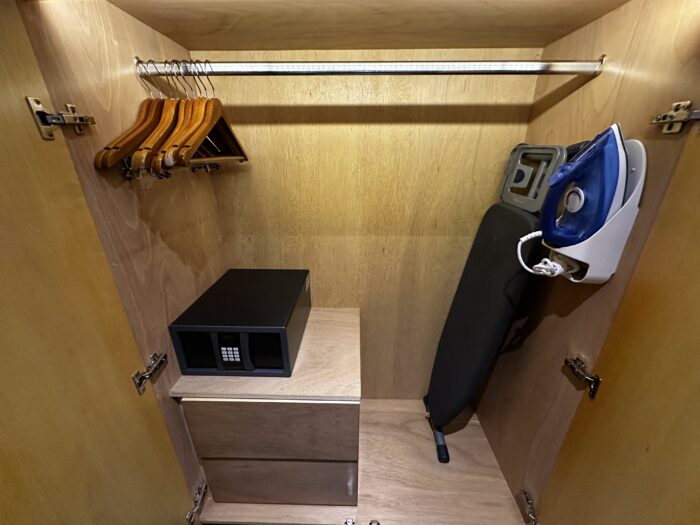 中は、ハンガー、セーフティボックス、アイロンがありました。