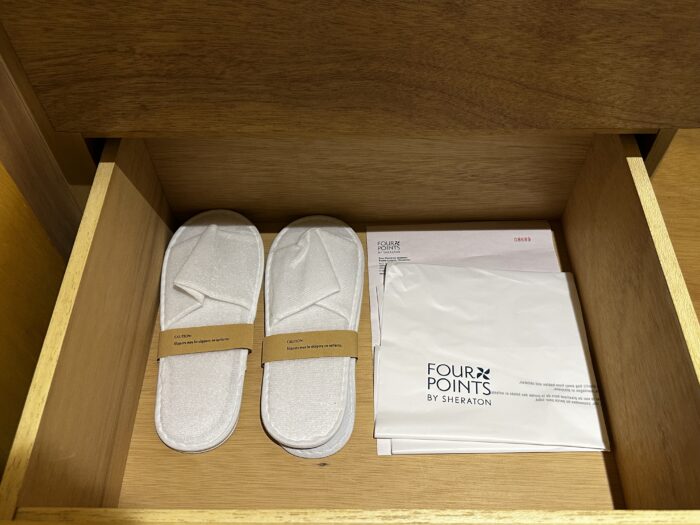 引き出しの中は、スリッパとクリーニングサービスの申し込み用紙が入ってます。