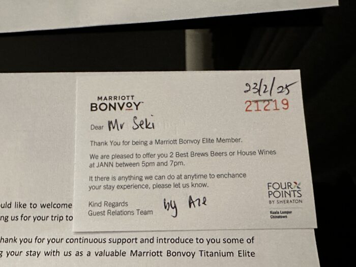 フォーポイントバイシェラトン クアラルンプール チャイナタウンのプラチナエリート特典