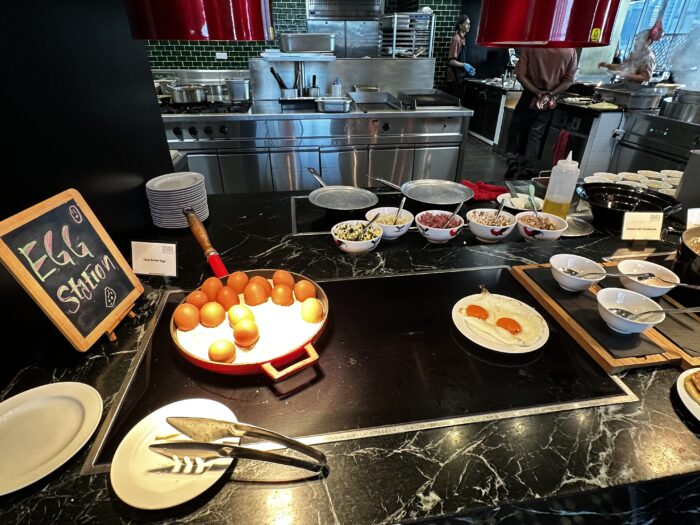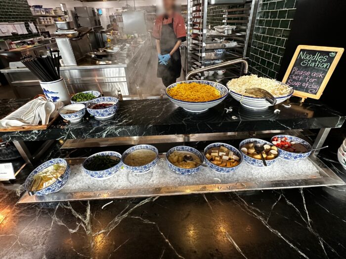朝食はビュッフェ形式になっていて、エッグステーションやヌードルバーも用意されています。