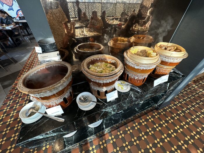 ヌードルバーのスープは日替わりで、シェフに聞かないとなにがあるかわからないです。