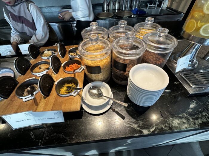 ハム、チーズ、ミューズリーなどコールドミールコーナーと、右の写真はヌードルバーです。
