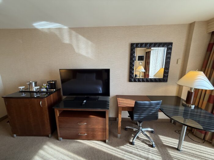 壁側には、ミニバー、テレビ、ビジネスデスクが設置されています。