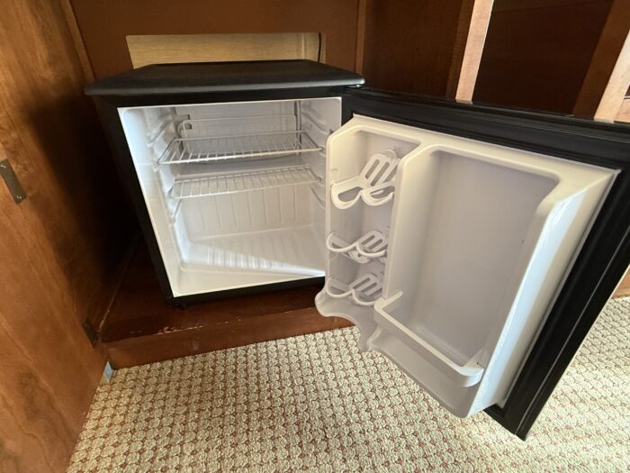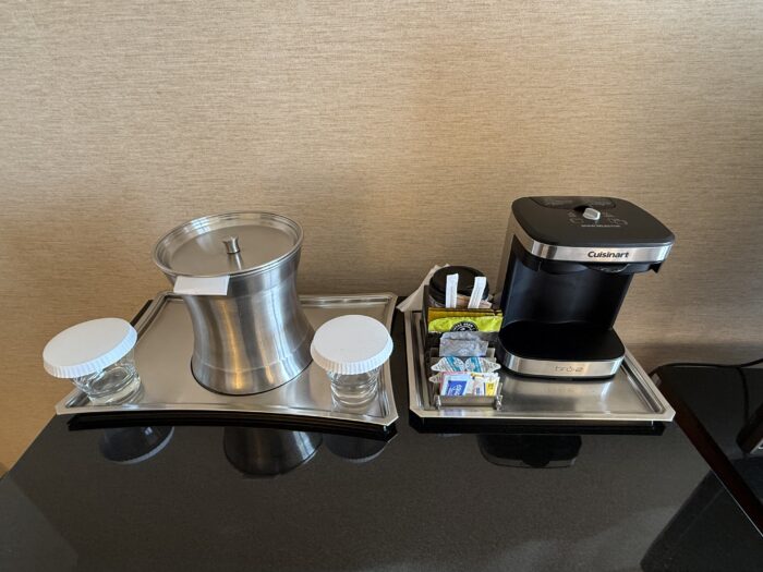 ミニバーには、コーヒーメーカー、紅茶のティーバッグ、アイスペールがあります。