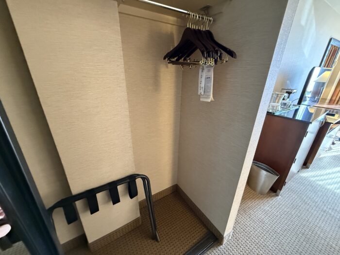 中はハンガー、バゲージラック、ランドリーサービスの申込用紙、
