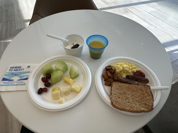 アメリカ国内のヒルトンホテルでは無料の朝食はなく、ホテル内の飲食が割引されるクレジットがもらえるはずですが、聞いても全然通じませんでした。