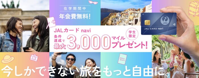 学生の方でJALカードの保有を検討されている方に、おすすめの1枚が年会費無料で保有ができる「JALカード navi」です。
