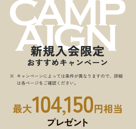 現在多数のキャンペーンが開催されており、最大104,150円相当の特典を受け取ることが可能です。