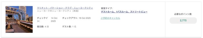 今回、予約はマリオットバケーションクラブのポイントを2,775ポイントで4泊予約しています。