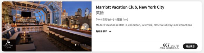 現金で泊まるホテルではないと思いますが、マリオットバケーションクラブオーナーでニューヨークに行くことがあればオススメできるかと思います。