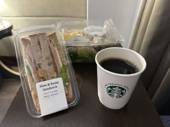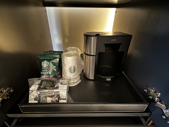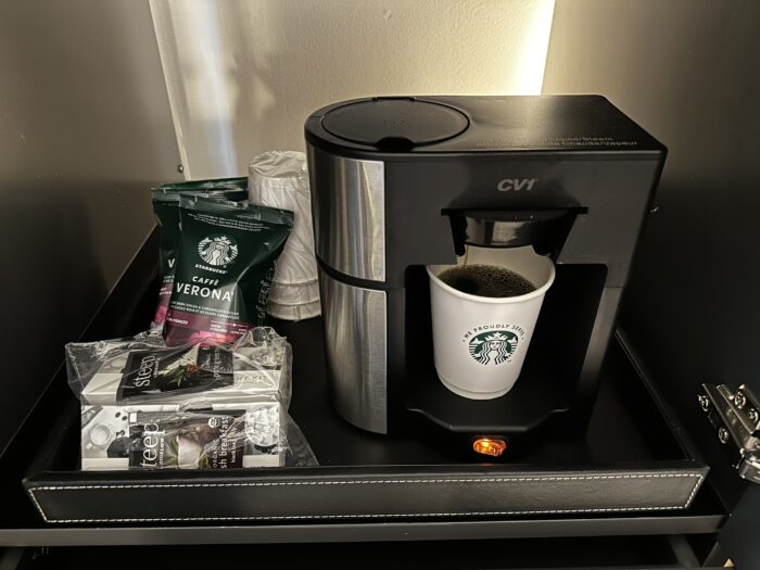 ミニバーに設置されていたスタバのコーヒーがとても美味しく、外でコーヒーを買わずに済んでしまいました。