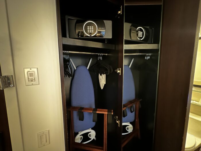 クローゼットには、アイロン台、バゲージラック、セーフティボックスが入ってました。