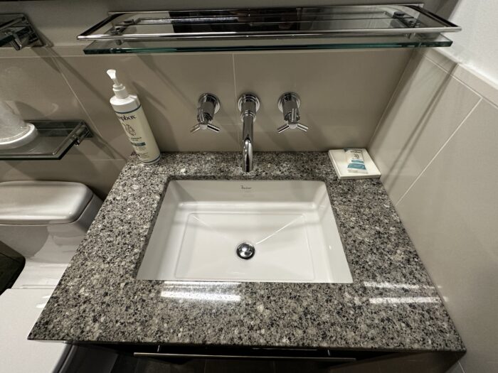 洗面エリアはシングルシンクで、石鹸、ボディーローションも「soapbox」のブランドになってました。