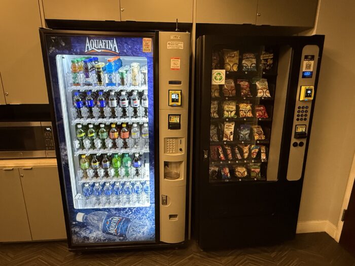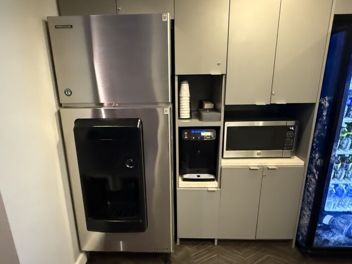 自販機の隣には、電子レンジ、ウォーターサーバー、アイスマシンがありました。