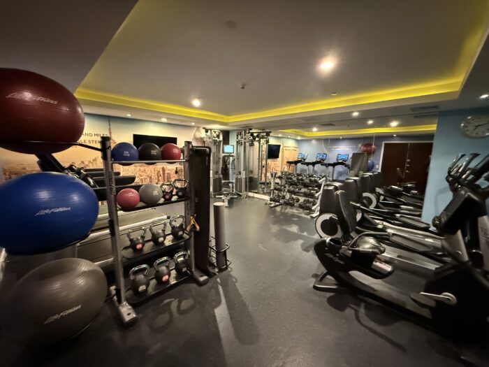 ランニングマシン、バイクの他、ウエイト系の設備が充実してました。