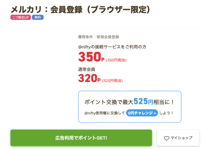 メルカリの会員登録は、ポイントサイトのポイントがもらえる広告が掲載されています。