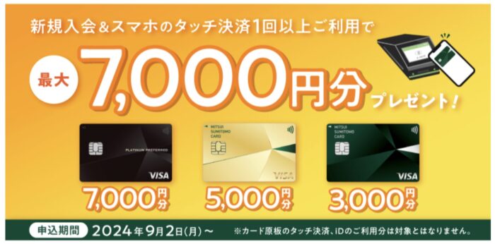 三井住友カードが開催しているキャンペーンは以下の通りです。