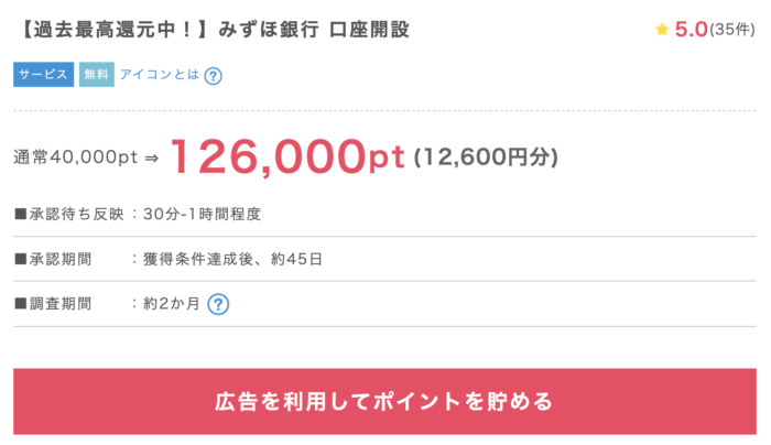 ・ポイントサイトでみずほ銀行の口座開設:12,600円相当
