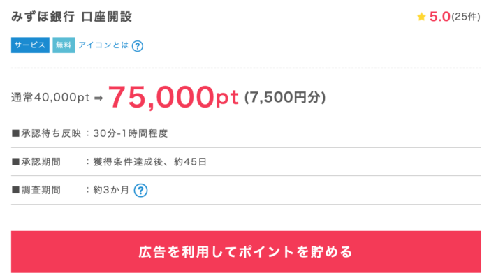 ・ポイントサイトでみずほ銀行の口座開設:7,500円相当