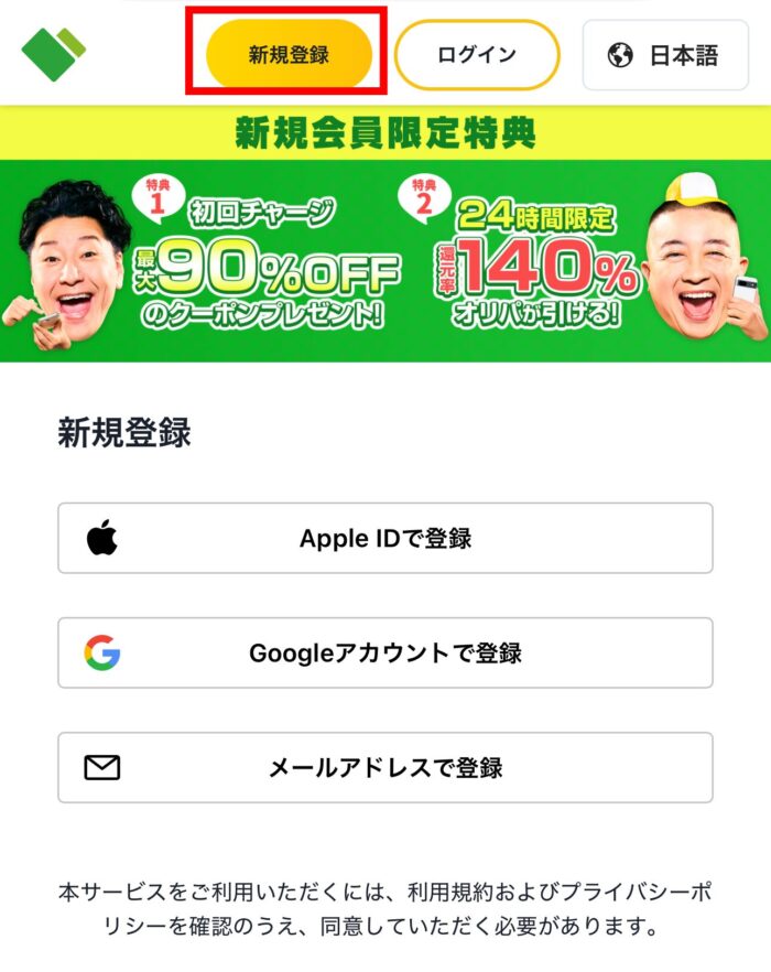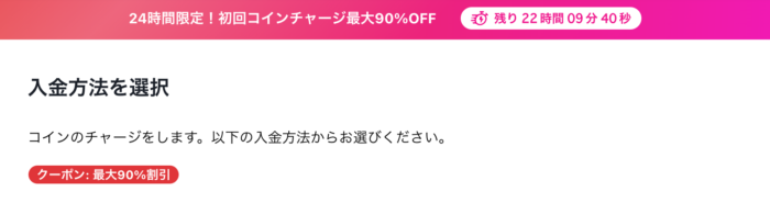 登録後24時間限定の初回チャージ最大90%オフ