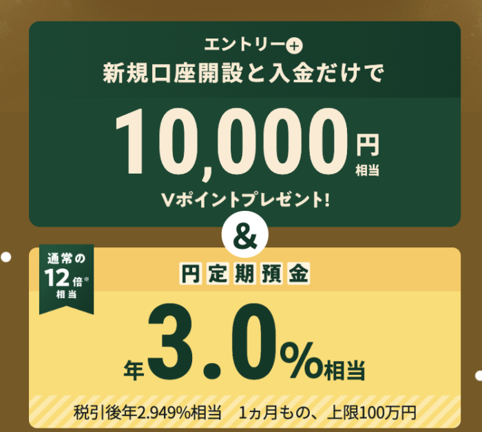 新規口座開設+入金で10,000円相当のVポイントが獲得できます。